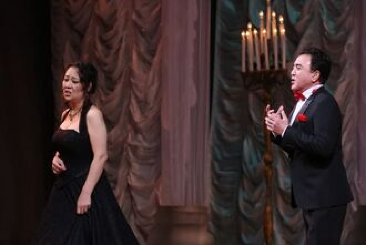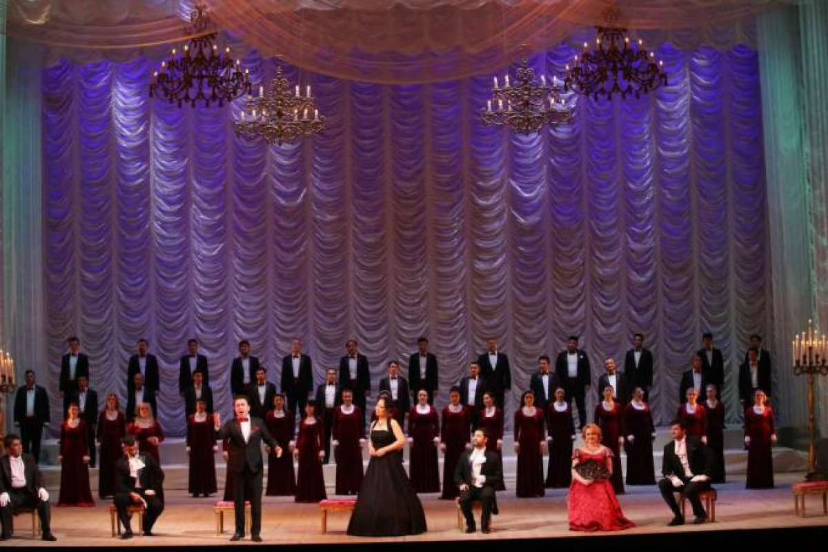 Вот прозвучала грустная нежная прелюдия, открылся занавес, и зрители тотчас поняли, увидев на сцене хор в полном составе и на первом плане всех действующих лиц: привычный театр отменяется. Вместо роскошного гала-представления — постановка носит довольно сдержанный характер. Вся эта эффектность в новой постановке оказалась излишней. Опера приобрела ощущение камерности, интимной драмы, которая связывает троих людей: Виолетту (Гульнара Альджанова), Альфреда (народный артист Узбекистана Нормумин Султанов) и Жермона (заслуженный артист Узбекистана Шукур Гафуров).